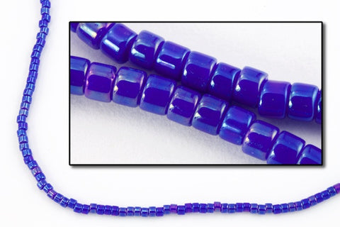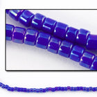 Size 11/0 opaque royal blue luster cylinder seed bead.