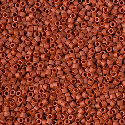 Size 11/0 matte opaque glazed sienna cylinder seed bead.