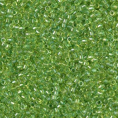 Size 11/0 inside dyed chartreuse cylinder seed bead.