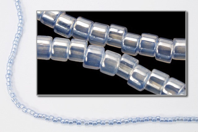 Size 11/0 pale blue pearl cylinder seed bead.