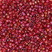 Size 11/0 red lined iridescent red cylinder seed bead.