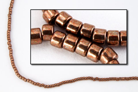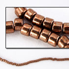 Size 11/0 galvanized rose gold cylinder seed bead.