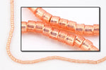 Size 11/0 silver lined light copper cylinder seed bead.