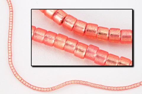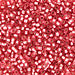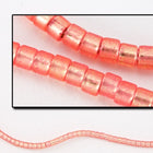 Size 11/0 semi matte silver lined medium rose cylinder seed bead.