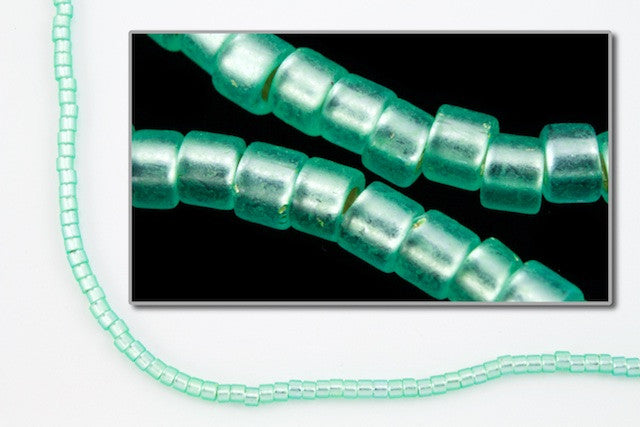 Size 11/0 semi matte silver lined mint cylinder seed bead.