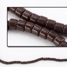 Size 11/0 opaque chocolate brown cylinder seed bead.