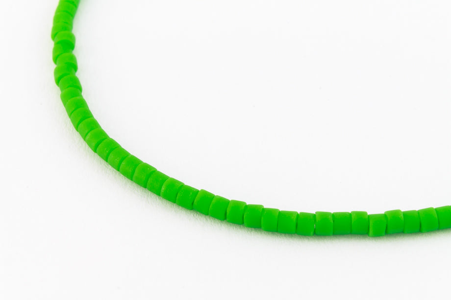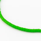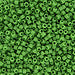 Size 11/0 matte opaque pea green cylinder seed bead.