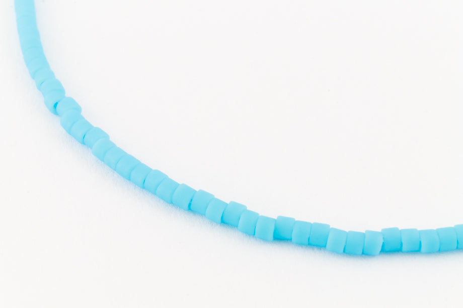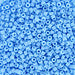 Size 11/0 matte opaque light blue cylinder seed bead.