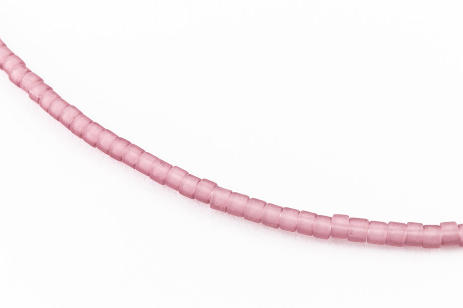 Size 11/0 matte transparent lilac cylinder seed bead.