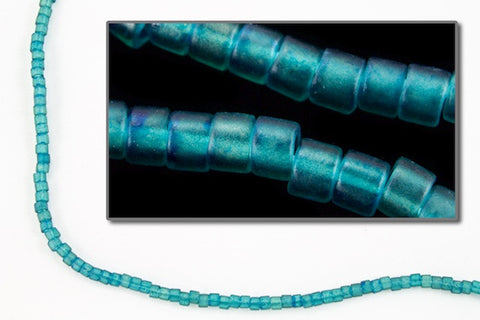 Size 11/0 dyed matte transparent teal cylinder seed bead.
