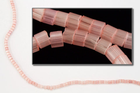 Size 11/0 satin pale salmon cylinder seed bead.