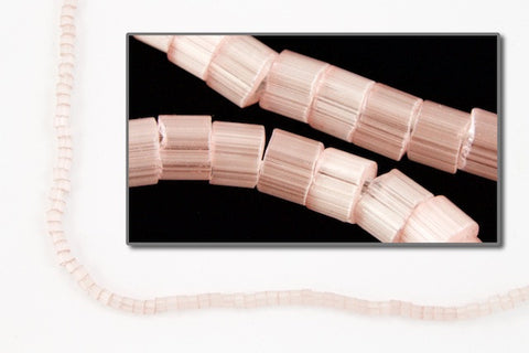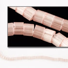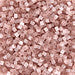 Size 11/0 satin pale dark salmon cylinder seed bead.