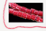 Size 11/0 shimmering hot pink lined crystal hex cut cylinder seed bead.