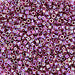 Size 11/0 magenta lined iridescent crystal cylinder seed bead.