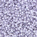 Size 11/0 pale lavender lined iridescent crystal cylinder seed bead.