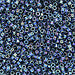 Size 11/0 blue lined iridescent light blue cylinder seed bead.