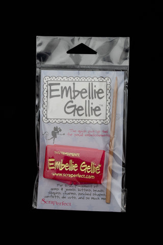 Embellie Gellie from ScraPerfect is a clear, tacky gel that quickly picks up and places a wide variety of embellishments.