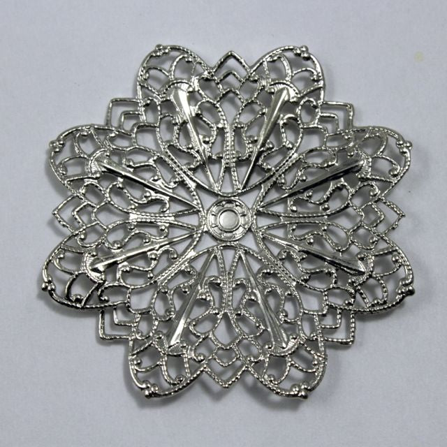 Brass Filigree with Silver Plating Color. Made in the USA in the 2010's.