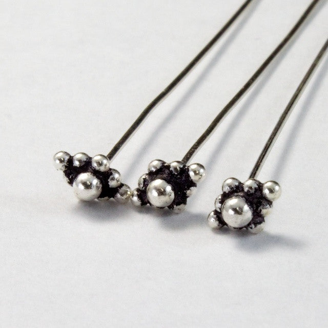 2.5" long head pin with diamond shaped beaded stopper.