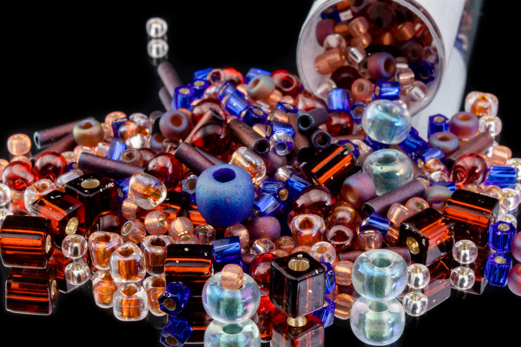 May include seed beads, bugles, cubes, hex beads and magatama drops.