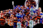 A mix of color-coordinated beads in multiple shapes, sizes and finishes.