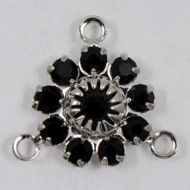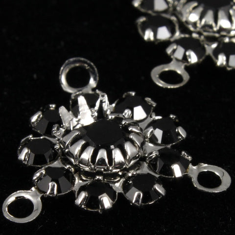 Jet Swarovski point back rhinestones sparkle in silver settings.