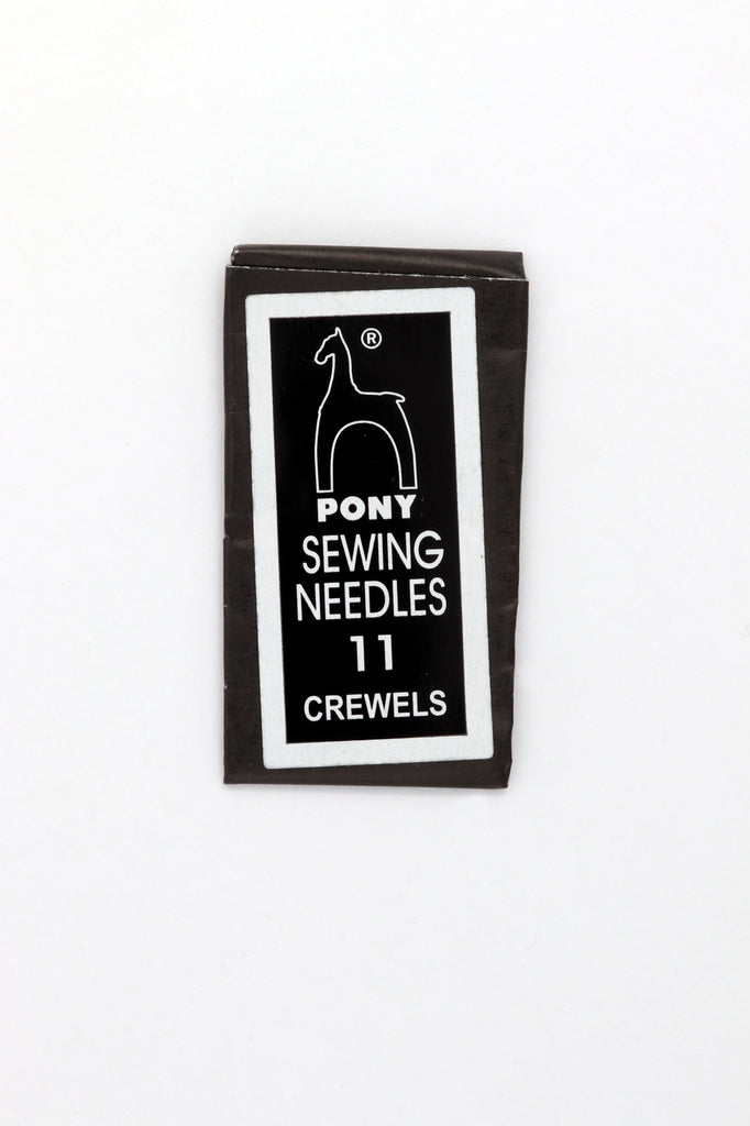 Pony brand sewing needles are made of high carbon steel with nickel plated finish to smoothly pass through fabric.