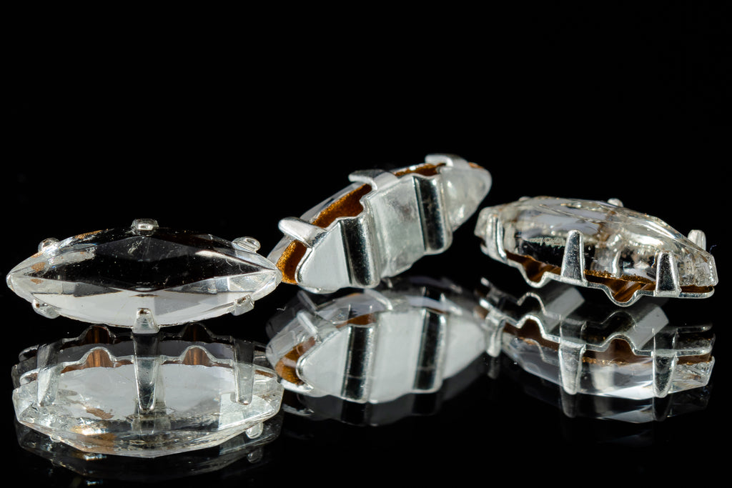 11mm x 4mm crystal clear faceted point back navette shape rhinestone in silver setting.