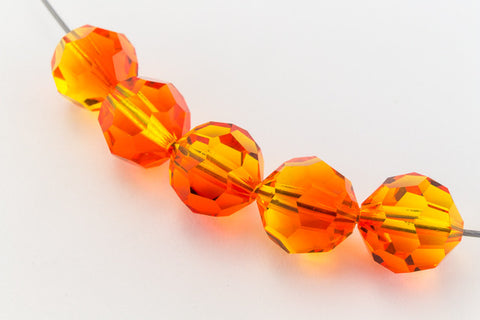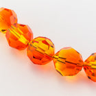 Transparent fire opal faceted round bead.