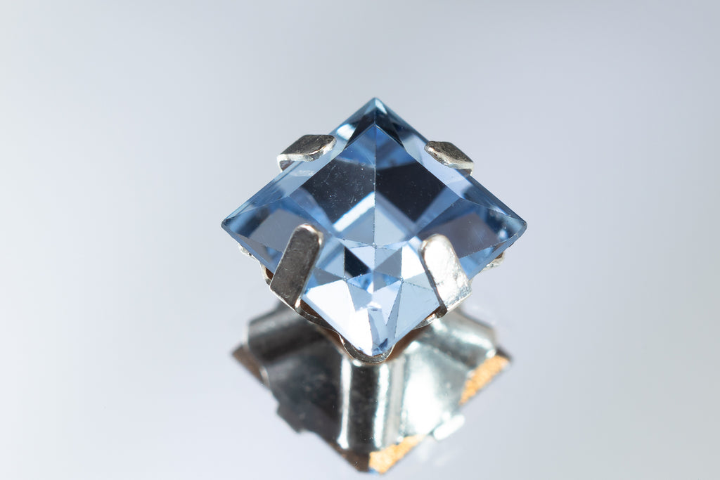 6mm light sapphire point back Maxima square rhinestone in silver setting.