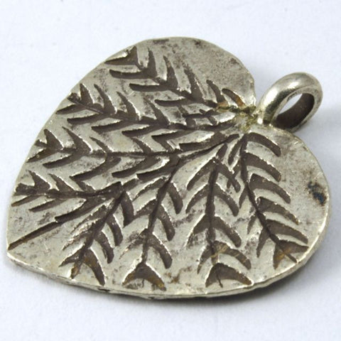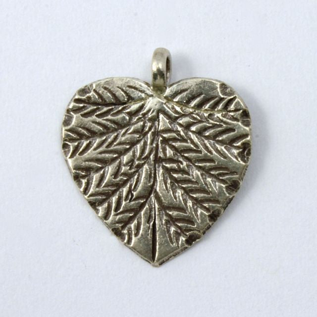 Thai Sterling Silver 0.925. 20mm heart shaped leaf charm with vein detail and perpendicular loop.Sold individually.