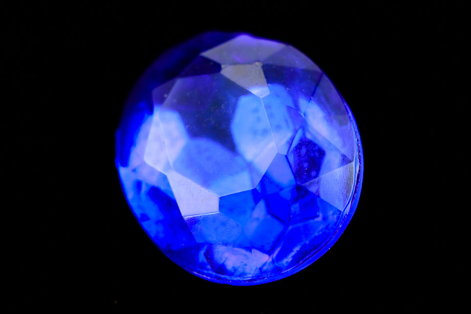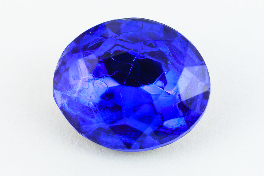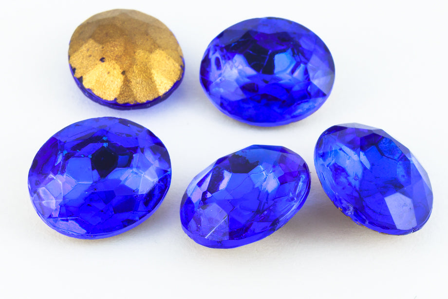 10mm x 12mm cobalt faceted oval point back with gold foiling.