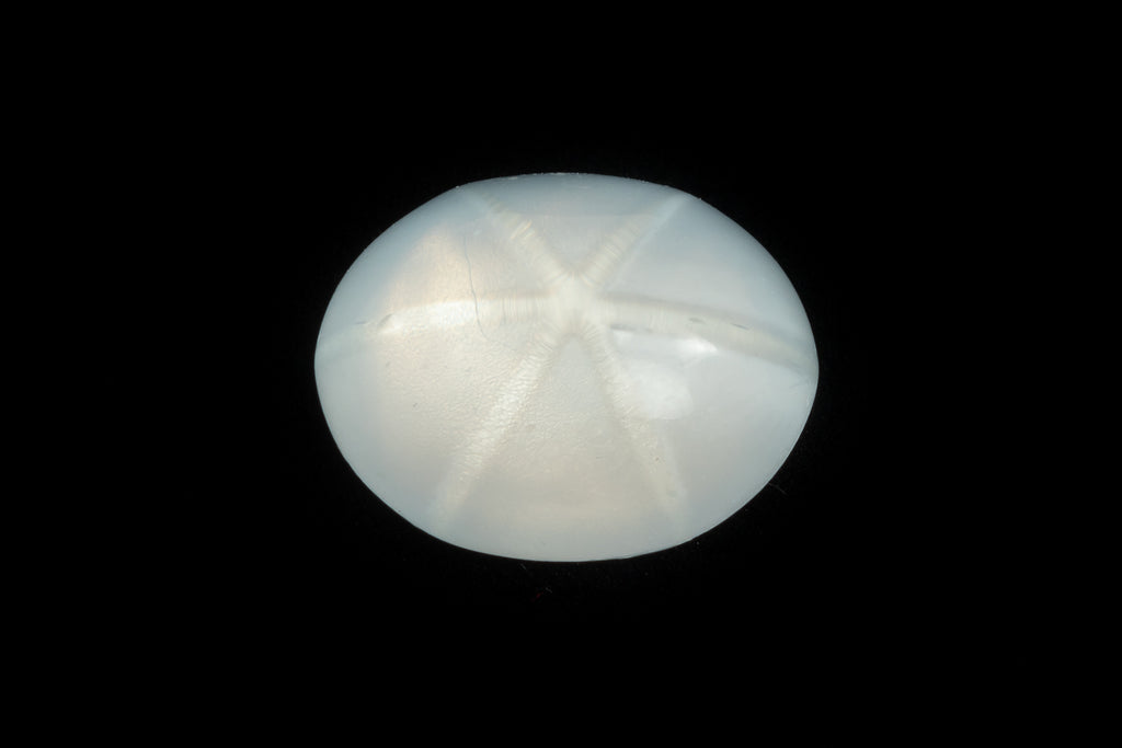 Opal white with six rayed white starburst "asterism".