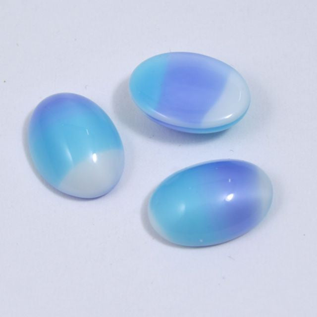 10mm x 13mm smooth aqua blue oval with white stripes, unfoiled.