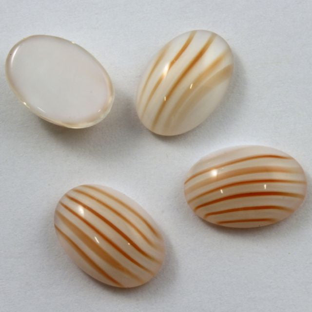 10mm x 14mm white oval flat back with thin orange stripes.