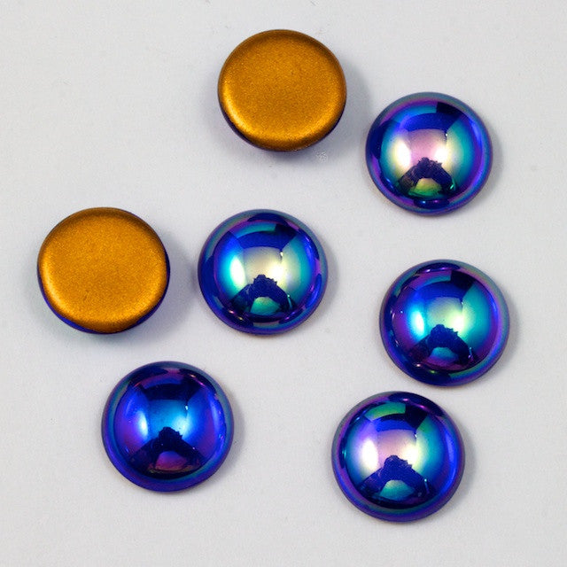 11mm round Cobalt AB glass with flat foiled back.