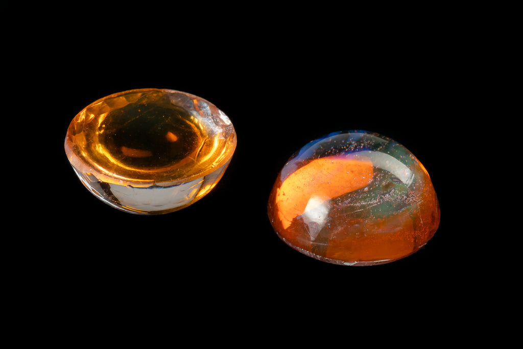 10.98mm Mexican Fire Opal domed round unfoiled flat back.