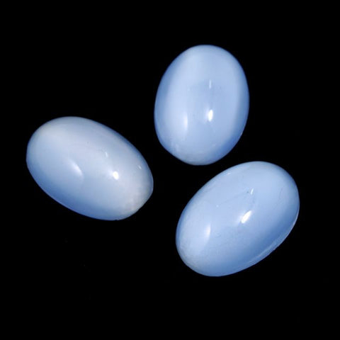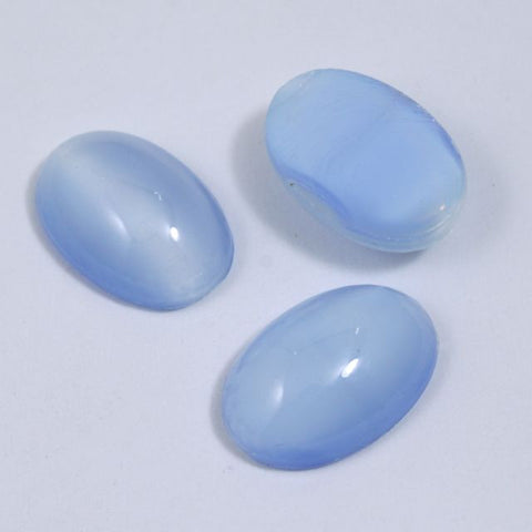 Vintage 11mm x 16mm Light Blue Cat's Eye Glass Oval Cabochon (2 Pcs) #292