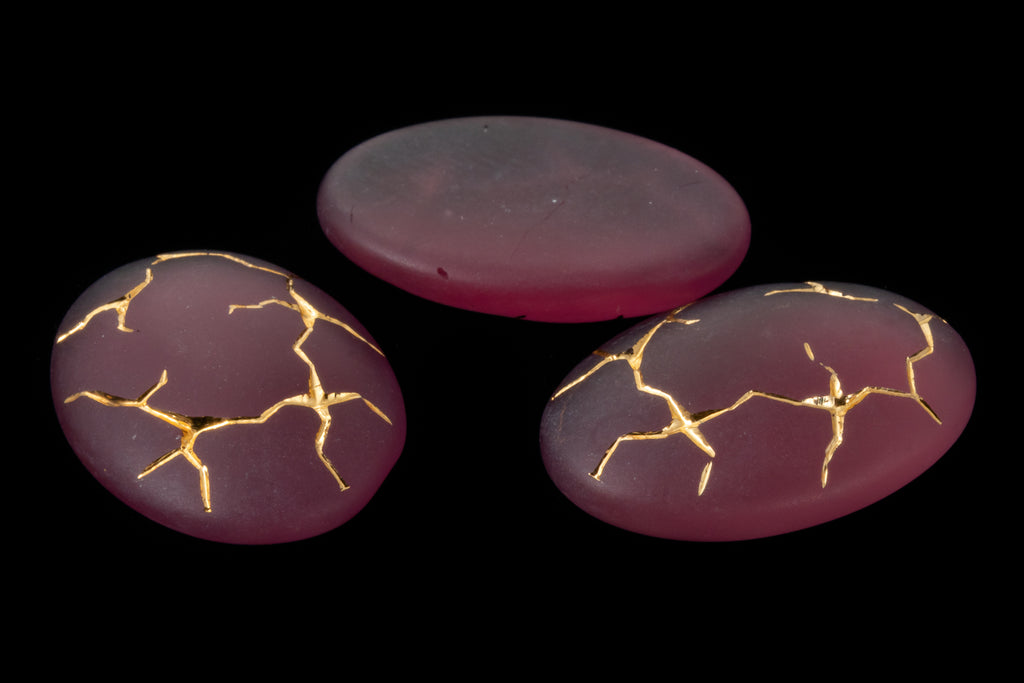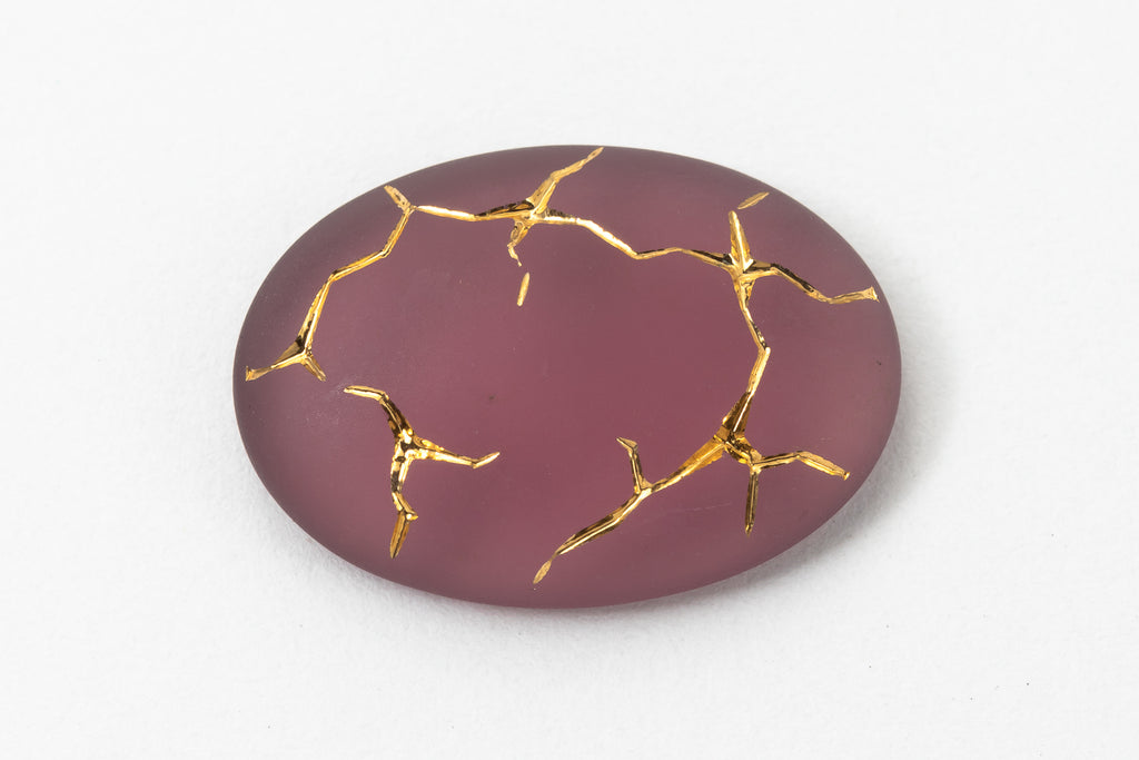 13.1mm x 17.6mm frosted amethyst with gold crackles.