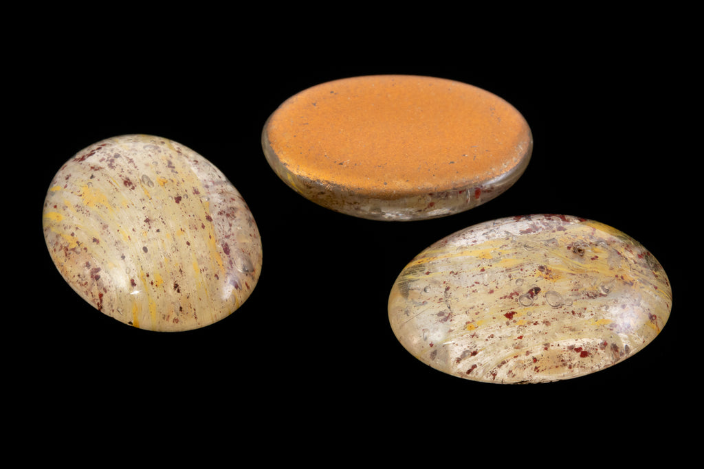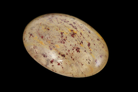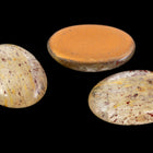 Vintage glass cabochon. 12.98mm x 17.85mm smooth oval flat back.Champagne with yellow and brown speckles. Made in Germany or the Czech Republic in the 1960's or earlier. Sold individually.