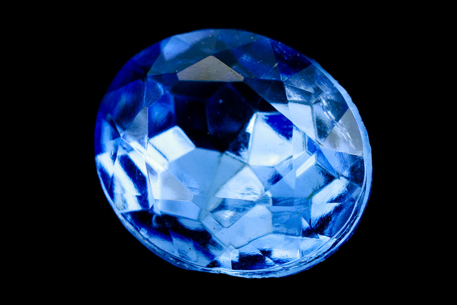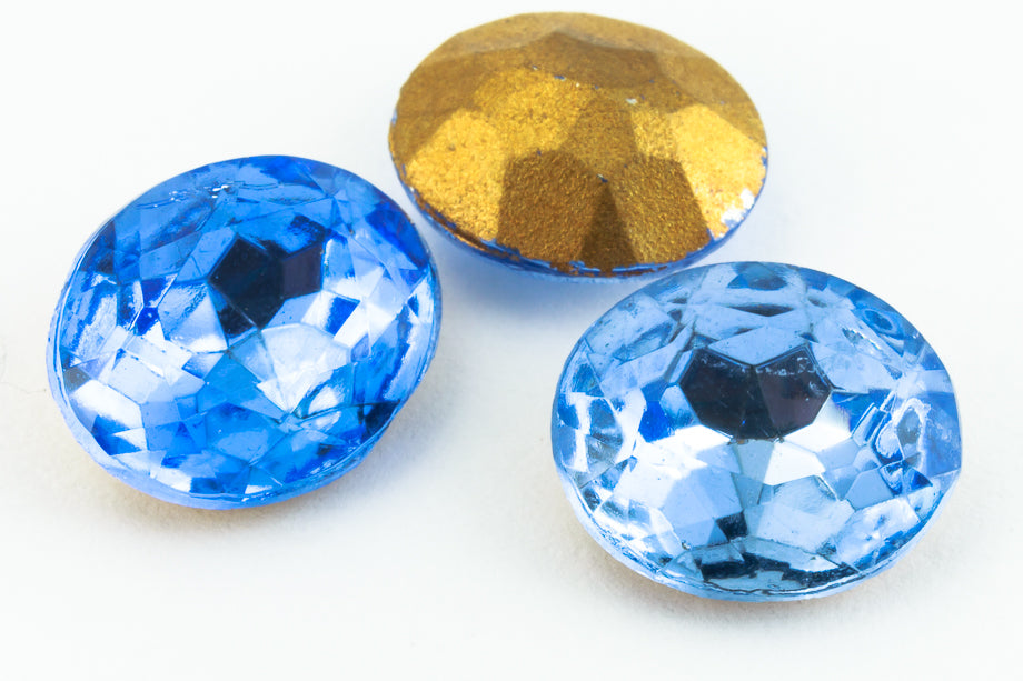 13mm x 18mm light sapphire faceted oval point back with gold foiling.