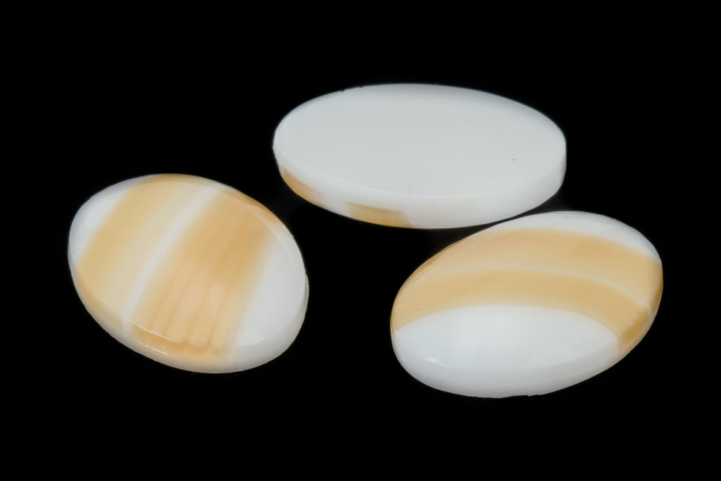13.09mm x 18.03mm white oval cabochon with beige stripes.