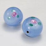 14mm round lampwork bead. Quicksilver light blue with swirled pink rose and green leaves.