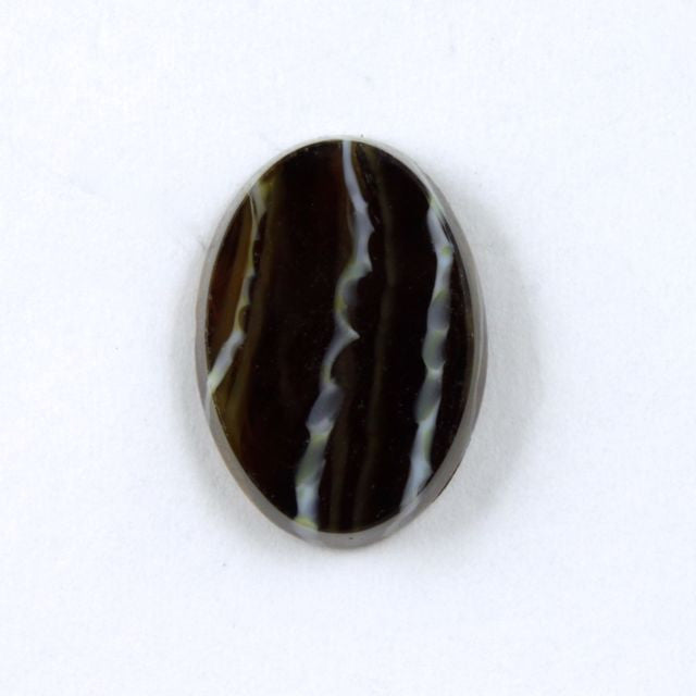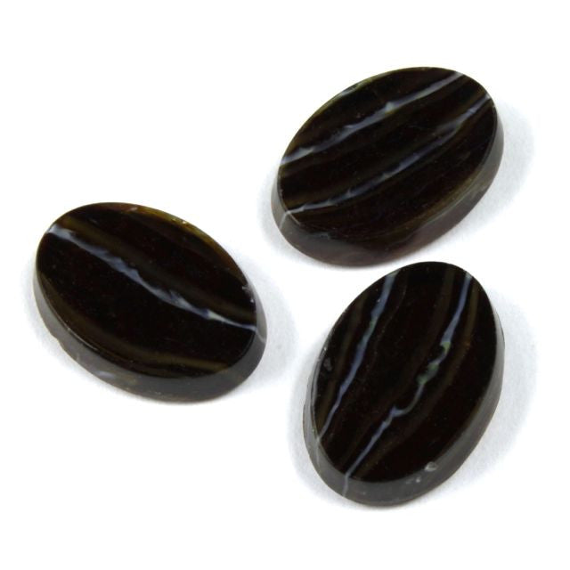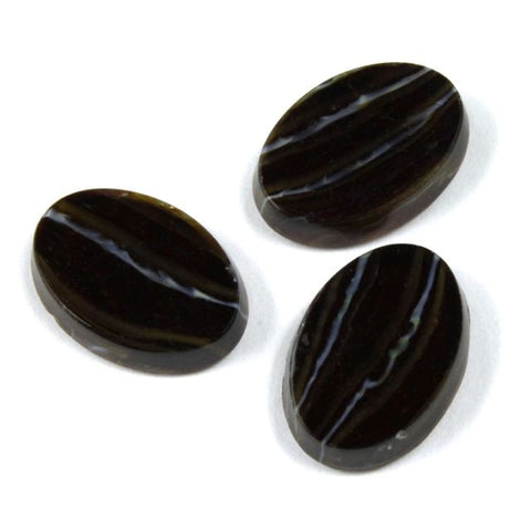 12mm x 16mm flat tabled oval in dark brown marbled with white and ochre. Flat back.
