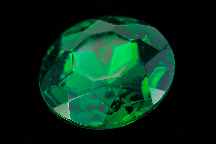 18mm emerald faceted round point back with gold foiling.