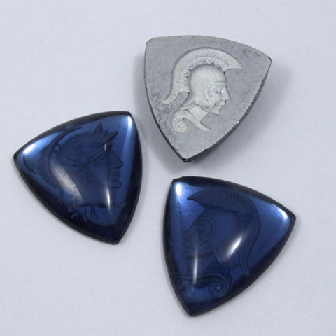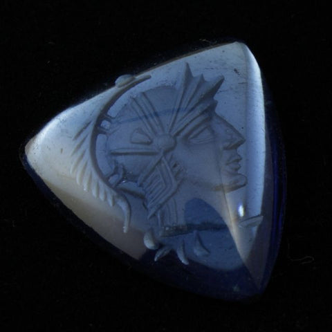 18mm x 20mm flat back rounded triangle with right facing intaglio profile of a Trojan warrior.