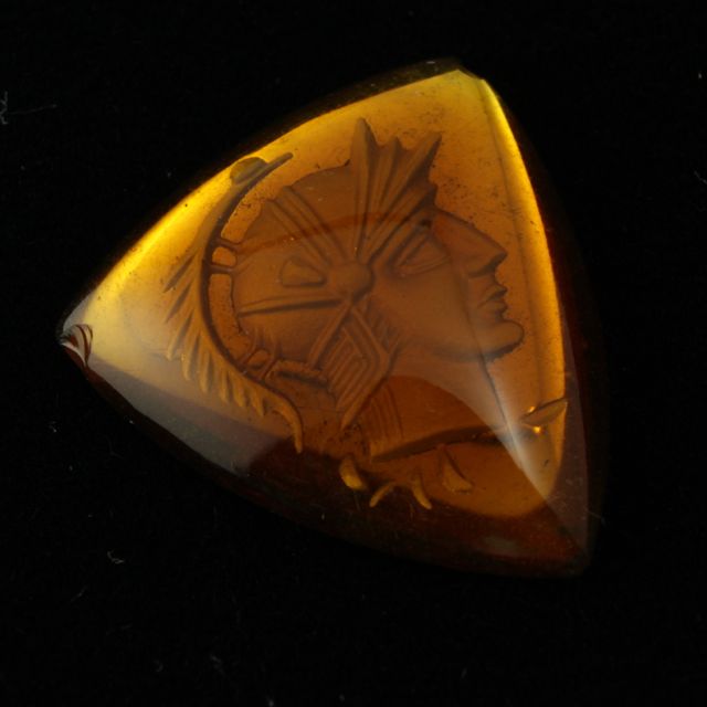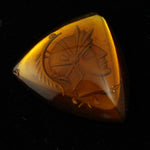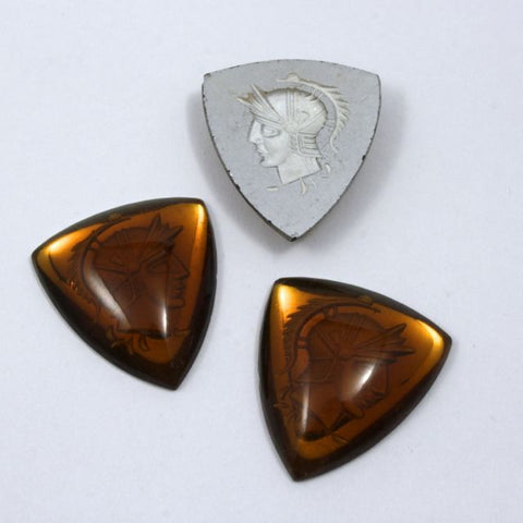 18mm x 20mm flat back rounded triangle with right facing intaglio profile of a Trojan warrior.