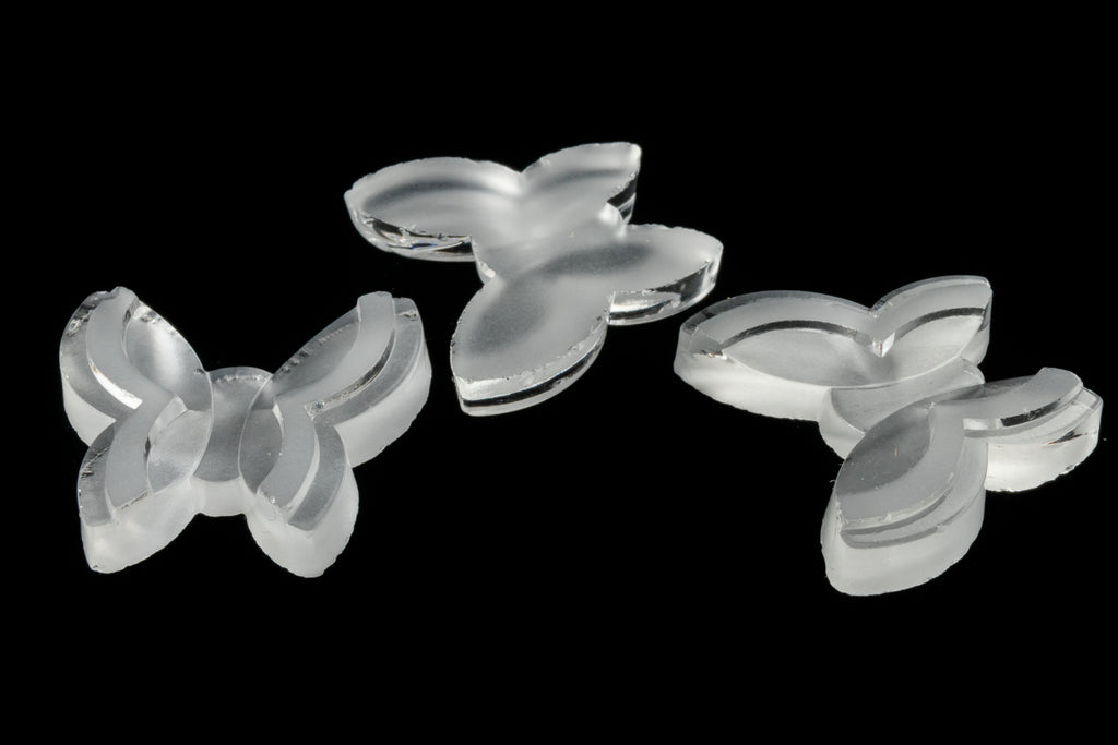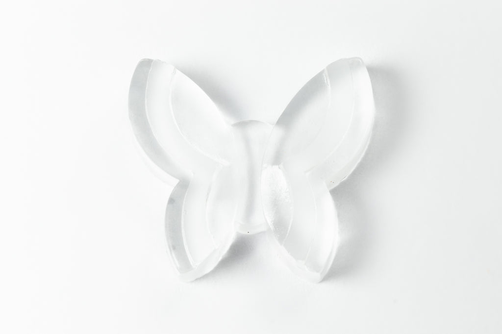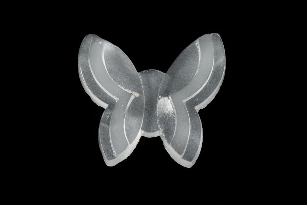 Vintage glass cabochon. 18.4m x 20.73mm matte crystal flat back shaped like a butterfly.Wings have raised section.Made in Germany or the Czech Republic in the 1960's or earlier. Sold individually.