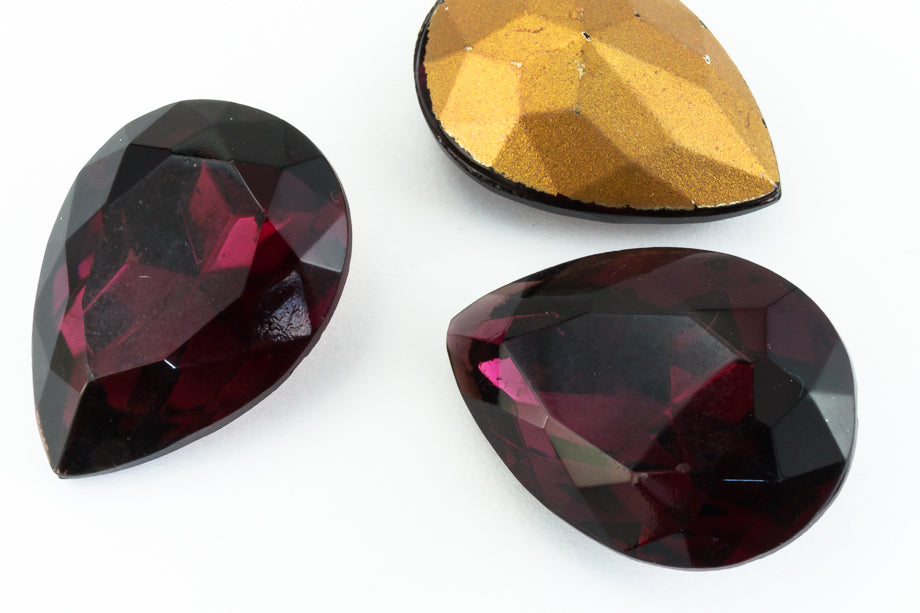 18mm x 25mm Amethyst faceted teardrop point back with gold foiling.