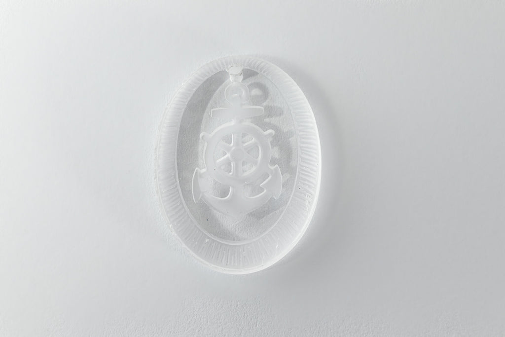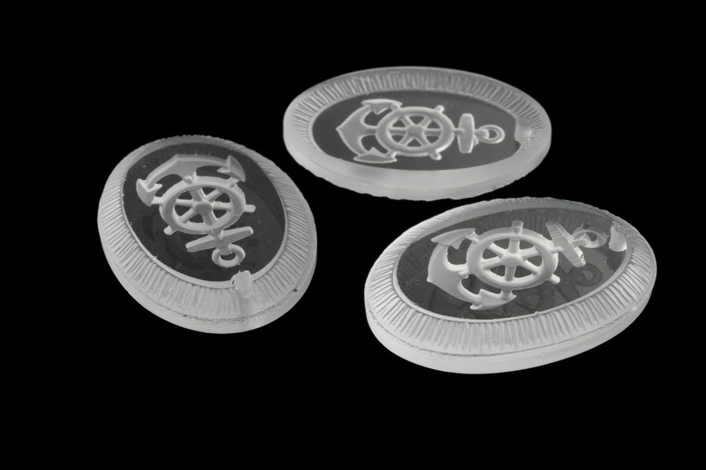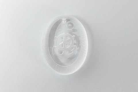 18mm x 24.82mm clear glass oval with etched anchor and ship's wheel.